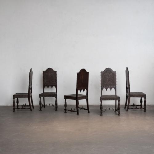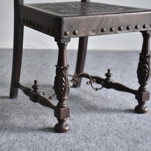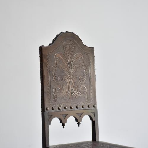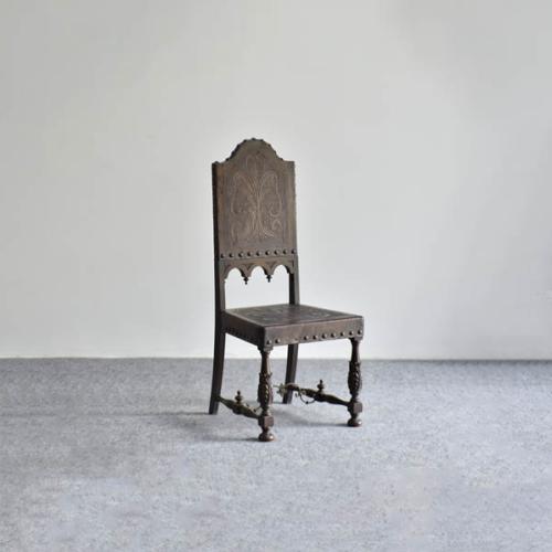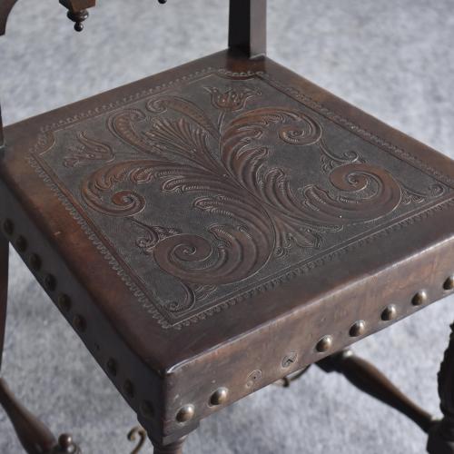 CAD ESTILO EUROPEU MADEIRA EBANIZADA C/ ASSENTO E ENCOSTO PIROGRAFADO E APLIQUES EM METAL C/ PATINA - DEC 40