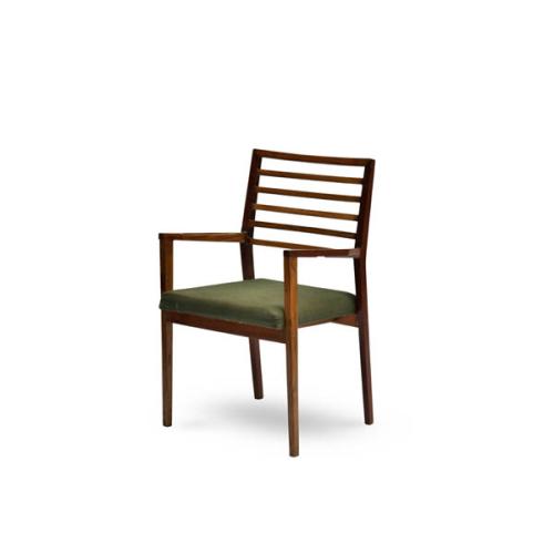 CADEIRA BRAÇO COM ESTRUTURA EM PAU FERRO , ASSENTO ESTOFADO E ENCOSTO RIPADO