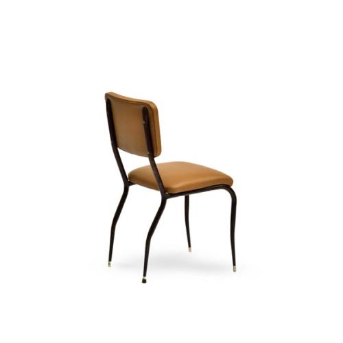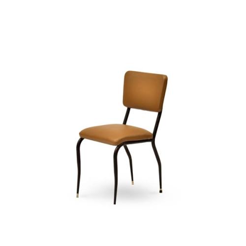CADEIRA EM COURO BEGE E BASE EM FERRO