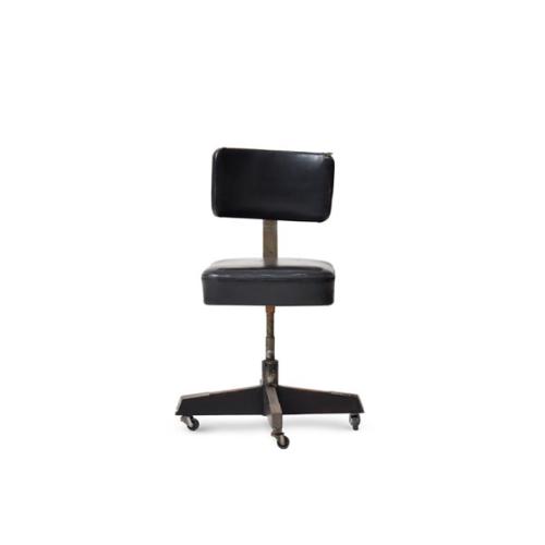 CADEIRA DE FERRO GIRATÓRIA COM ESTOFADO EM COURO PRETO