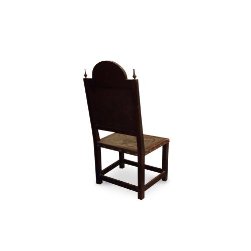CADEIRA ESTILO ANTIGO COM ASSENTO E ENCOSTO EM COURO PRETO - ITALIANA
