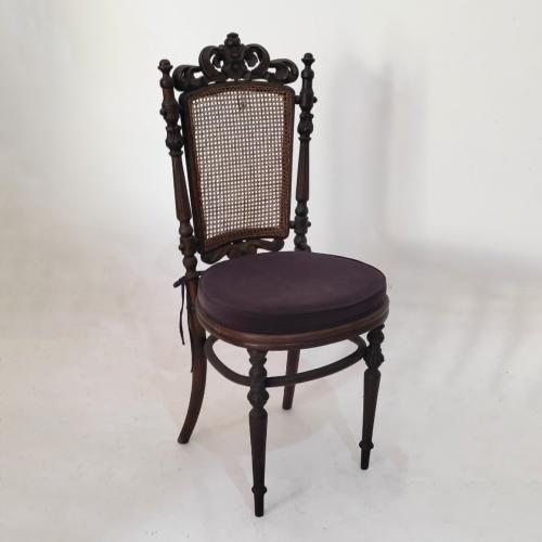 CADEIRA ESTILO ANTIGO COM ENCOSTO EM PALHINHA E ASSENTO ESTOFADO - SEC XIX