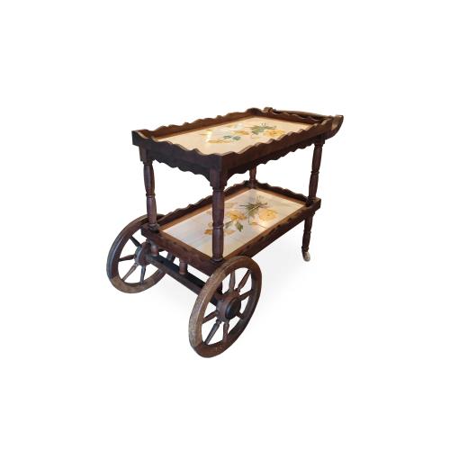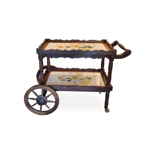 CARRINHO DE CHÁ ANTIGO COM 2 PAVIMENTOS E AZULEJO - DEC 50/60