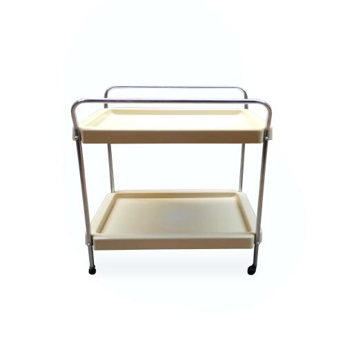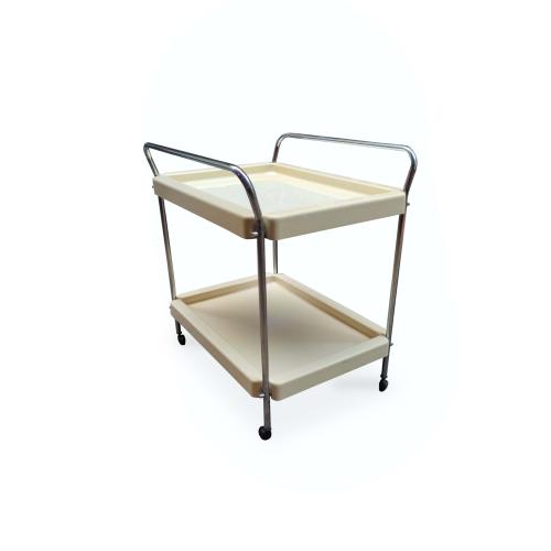 CARRINHO DE CHÁ BEGE COM ESTRUTURA CROMADA E 2 PAVIMENTOS EM ACRÍLICO