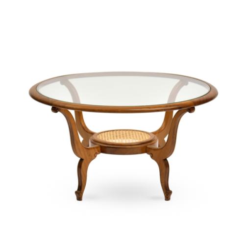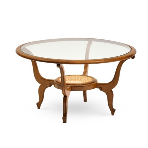 CENTRO ESTRUTURA EM CAVIÚNA , PALHINHA COM TAMPO VIDRO - DEC 60