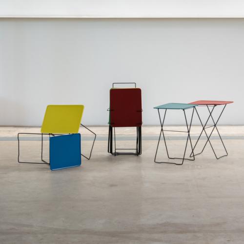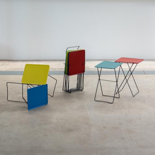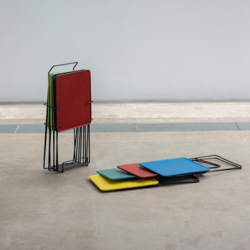 CONJUNTO DE MESINHAS AUXILIARES DOBRÁVEIS COLORIDAS E FERRO - DEC 50