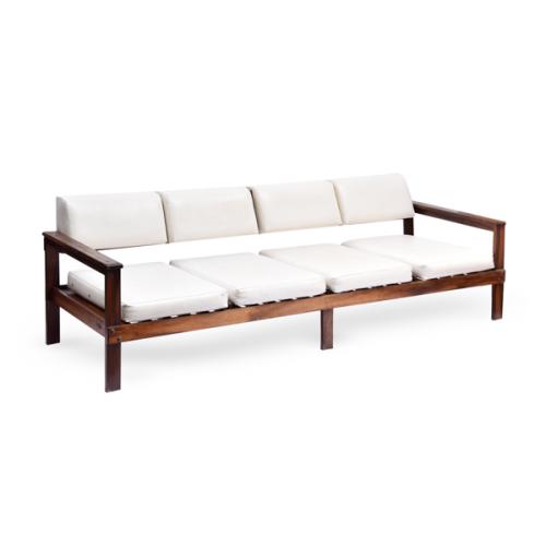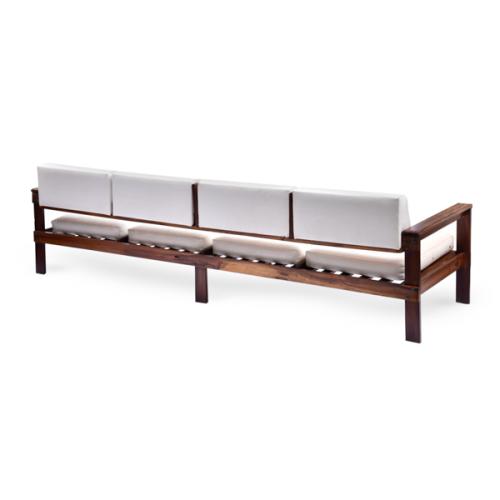 SOFÁ 4 LUGARES COM ESTRUTURA EM JACARANDÁ E ESTOFADO BRANCO - DEC 50/60